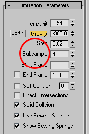 Перед тем как запустить симуляцию, установим еще один важный параметр - Subsample. Он увеличивает точность расчета. Он сильно грузит машину, но на такой низко полигональной модели этот параметр можно смело увеличивать до 4-6.