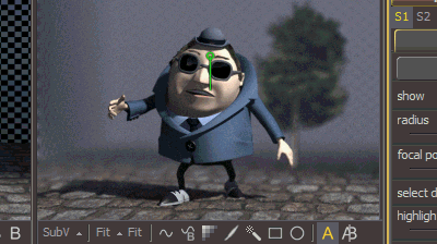 Точно таким же образом аттачим очки и шляпу. Приаттачить их можно к одной точке. Для этого выбираем место на голове, которое не будет подвержено лицевой анимации. Самое подходящее место - это макушка. Создаем на драйвере приаттаченую точку, и линкуем к ней шляпу, очки, глазные хелперы, и верхние зубы.
