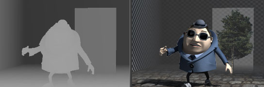 Благодаря Z буферу, мы можем применять 3D эффекты на видеомонтаже, такие как туман или глубина резкости, можно поместить в 2D изображение объект, как будто это не 2D, а 3D сцена, и даже сымитировать освещение! И к тому же сами эффекты можно сделать намного качественнее чем в максе. При помоши плагинов можно настоить эффект DOF с очень даже неплохим боке, то же касается и остальных эффектов.
