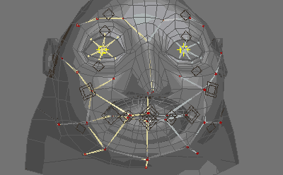 Для анимации мимики будем делать еще один интересный прием. Поскольку анимация мимики будет делаться не костями, а передаваться с меш-анимации лицевого драйвера, то надо к чему-то привязывать нижнюю челюсть. Что к чему, об этом позже, сейчас разберем суть самого приема.