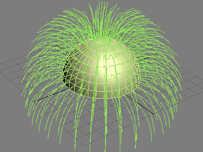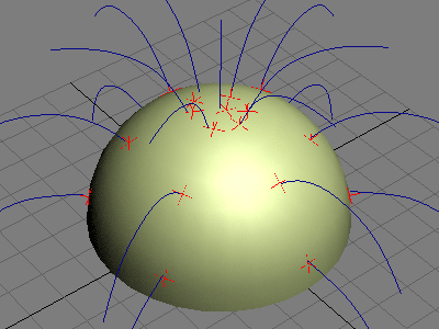 Я создам простой объект (скальп) и модель волоса (сплайн). В обычном случае можно просто прилинковать сплайн к скальпу, чтобы волосы при анимации вели себя правильно. Но если поверхность скальпа будет анимирована, как в моем случае или при анимации животного, покрытого шестью, то сплайны придется аттачить прямо на поверхность. Для этого я размещаю сплайны на поверхности, и в местах начала волос делаю приаттаченые к поверхности точки, используя скрипт Create Point on Surface (способ описан выше). А потом просто линкую каждый сплайн к своей точке.