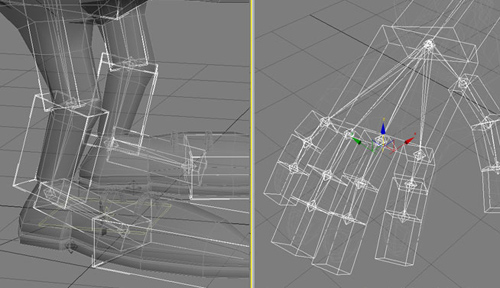 При создании модели желательно использовать модификатор Symmetry, чтобы все симметричные объекты можно было разместить идеально в нулевой точке. Это здорово облегчит риггинг и скининг, особенно при работе с пальцами, тогда можно будет скопировать вес точек с одной половины на другую, в противном случае придется настраивать всю модель.