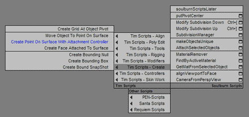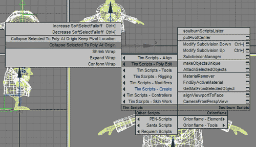 Анимацию самой мимики здесь затрагивать не буду, это тоже своего рода колоссальная по объему тема, требующего отдельного внимания. Дам только пару советов, чтобы не бросать проблему нерешенной. Анимацию мимики я делаю собственным способом, но построение костей чем-то напоминает вот эту систему. С ее помощью можно делать довольно гибкую анимацию мимики, единственное, что замечу, там применяются «мягкие» кости (то есть их можно тянуть) и показано как сделать такие кости в ручную, назначая контроллеры. Вообще это можно сделать за пару кликов используя скрипт Пола Нила - Stretchy Bones. Я сжалюсь на теми, кто захочет разобраться с этой системой, и дам этот скрипт. Его надо поместить в папку \3dsmax root\UI\MacroScripts. После перезагрузки макса скрипт можно назначить в Quad Menu, как я, или вынести на панель в виде кнопки.