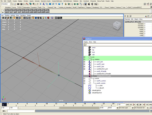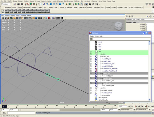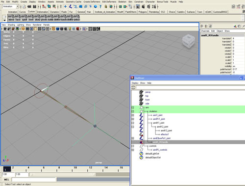 Как и в предыдущий раз скройте все лишнее, оставив только цепочку костей armIK1_joint.