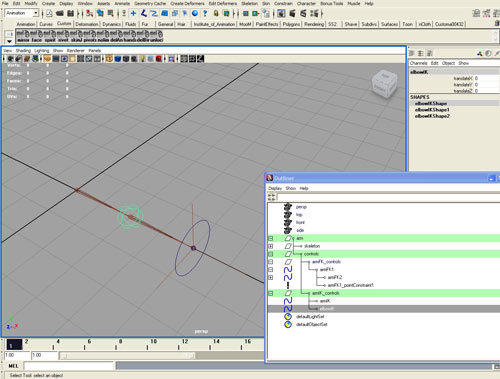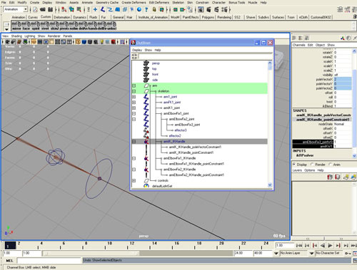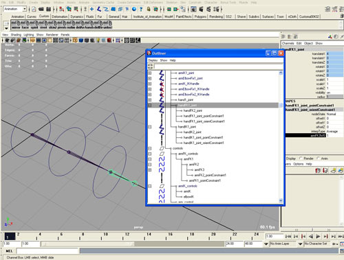 с цепочками костей и кинематиками ). Перемещаем в группу skeleton созданные цепочки костей (arm1_joint, armFK1_joint, armIK1_joint, armElbowFix1_joint)