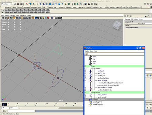 Наводим порядок: помещаем созданные элементы управления в новую "папку" armFK_controls, которая в свою очередь находится в новой группе arm|controls.