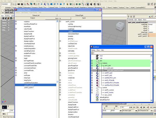 Аналогично соедините arm1_joint_orientConstraint1.armIK1_jointW1 с armIK_controls.visibility.