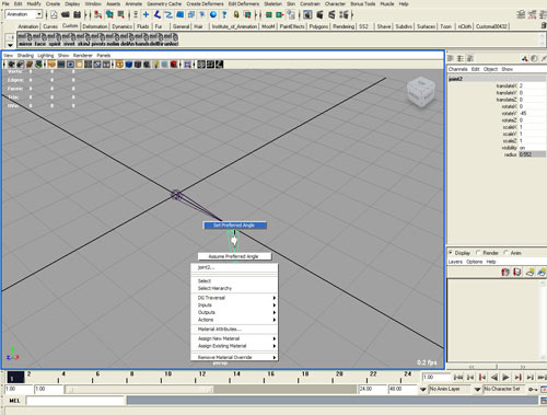 Повернем joint2 по оси Y на -45 градусов и жмем Ctrl+правая-кнопка-мыши. В меню выбираем "Set preferred angle"