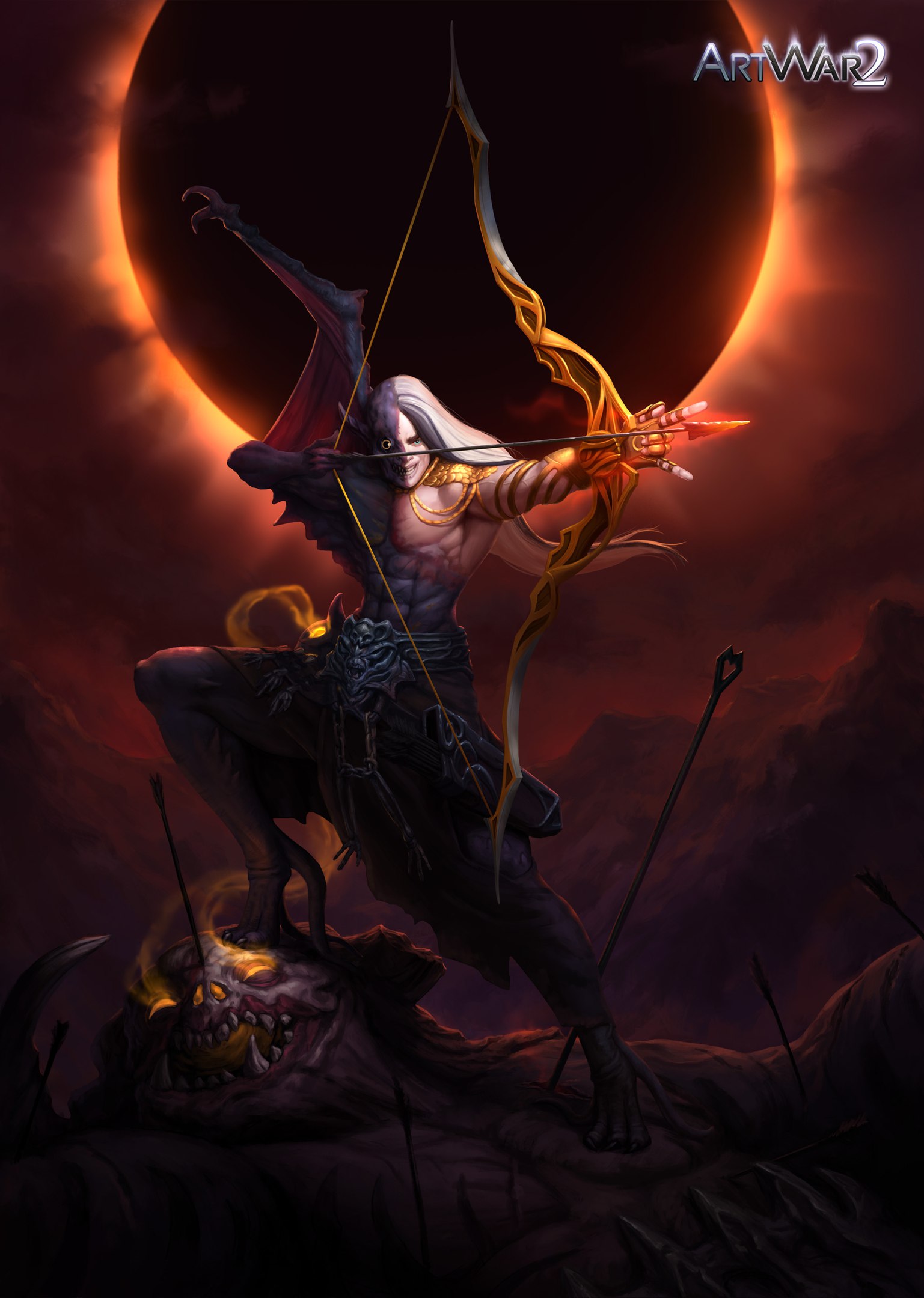 Итак, один амбициозный полубог солнечной династии в молитвах людей стал всё чаще и чаще слышать просьбы о помощи. Решив разузнать в чем проблема, он спустился к людям и увидел как их мир стали заполонять демоны. Полагаясь лишь на свои силы, в неравной схватке он потерпел поражение и был вынужден обратиться к Древним Богам, чтобы получить оружие, способное очистить мир людей от демонов. Получив в дар божественный лук, который стал частью его тела, он отправился истреблять демонов. Движимый яростью, он жестоко стал уничтожать всех демонических существ даже за пределами людского мира. Когда почти все демоны были истреблены, он пришел в Обитель Тьмы, где встретил Учителя демонов, ставшего у него на пути к истреблению тех, кто остался в живых. В яростной схватке полубог был повержен и поражен темной силой. Лишь та часть тела, которая была укрыта божественным орудием, сохранила божественные черты. Учитель сказал: "Движимый гордыней и алчностью, ты почти истребил мой род, нарушив баланс сил во Вселенной! Отныне ты будешь одним из нас и восстановишь то, что разрушил! С твоим приходом тьма будет приходить в мир даже днём!".