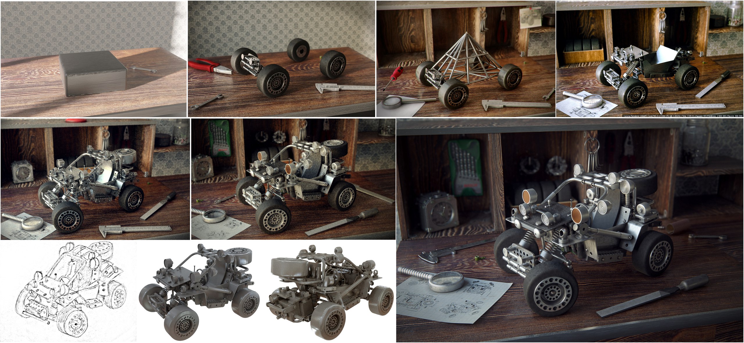 почитал ......Трогательно!за саму историю создания этого авто ставлю 10ку.да и за работу саму 10ку выполнено отлично. никогда не подумал бы что отличная история к 3д работе может добавить столько позитива.теперь всегда буду читать комментарии автора.