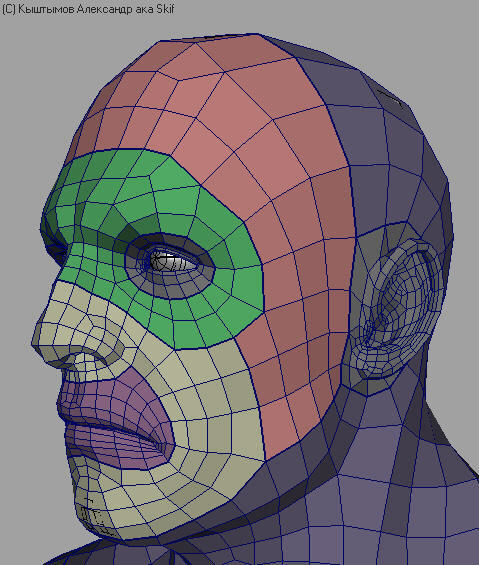 Вот что у меня получилось после некоторого редактирования. Беспокоят глаза, точнее веки, нижнее меньше, там думаю надо поправить немного, повернуть окончание века вверх, а то оно как бы вывернуто. Ну это я видимо автоматически сделал по книгам Марова ) Верхнее вопрос как лучше делать. По идее оно более подвижно чем верхнее. В других випах видел что делают сначала закрытый глаз, а открывают его при риггинге. Есть ли смысл тоже сделать закрытый глаз (хотя бы чтобы более правильно представлять как должна идти поверхность) а потом его открыть просто двигая точки?