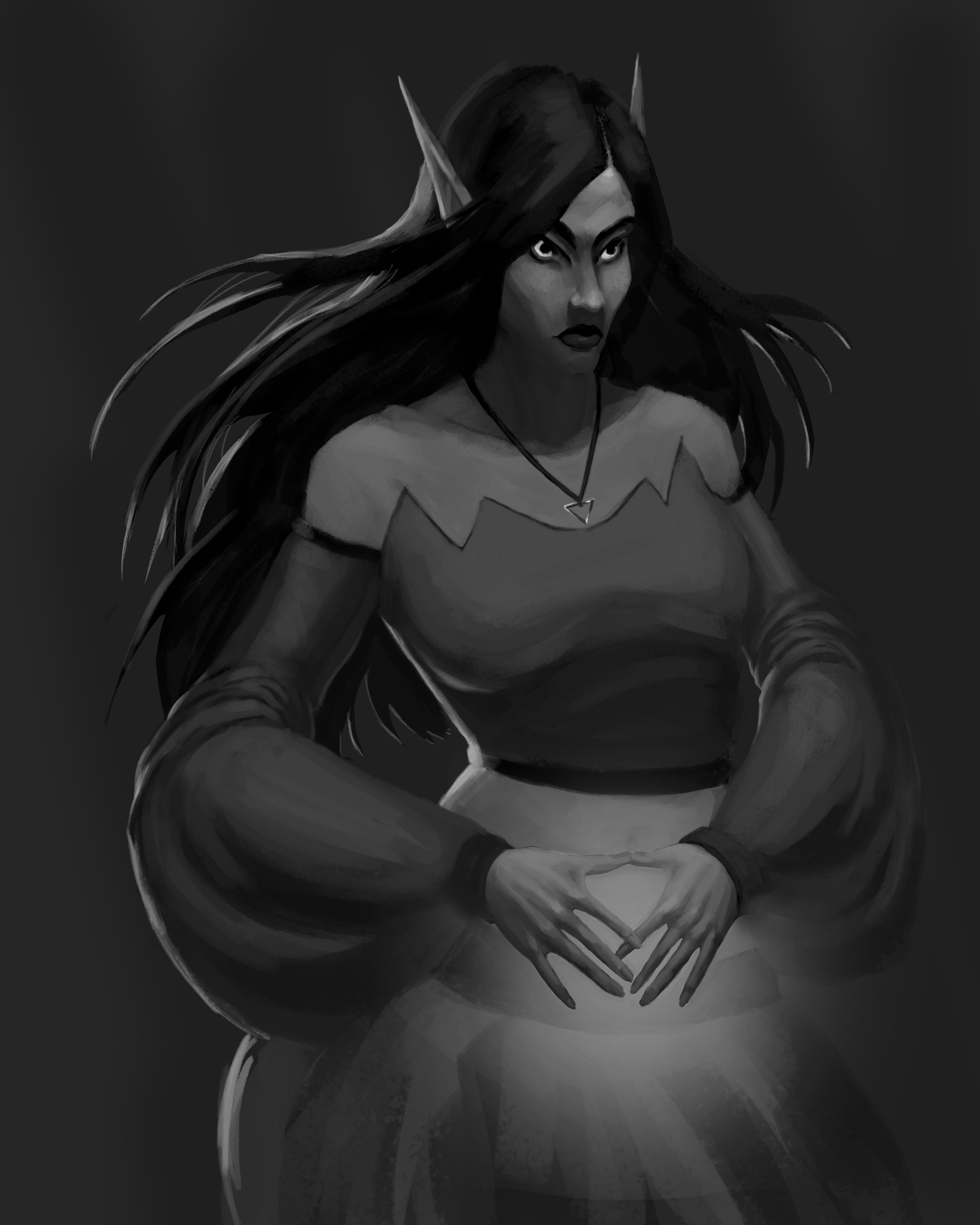 Анатомия и пропорции: 1. Общие пропорции тела искажены. Посмотри пропорции тела от Robert Hale и Andrew Loomis ( например, локоть правой руки эльфийки должен быть много выше).
