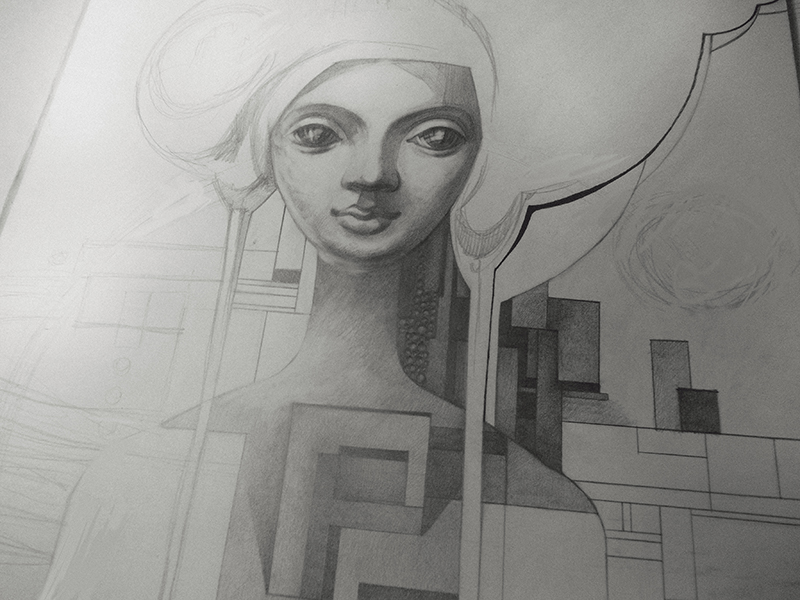 То, что было на бумаге - шикарно и конкретно этот начальный набросок мне понравился, а дальше сами взгляните, поставьте рядом первый и второй рисунки: Просто замазали.. убили всю "вкусность" кроны дерева, ствола, да вообще всего. После, и вовсе начался какой-то психодел =) Может быть мне не понятен конечный замысел, но я бы вернулся к первому наброску.