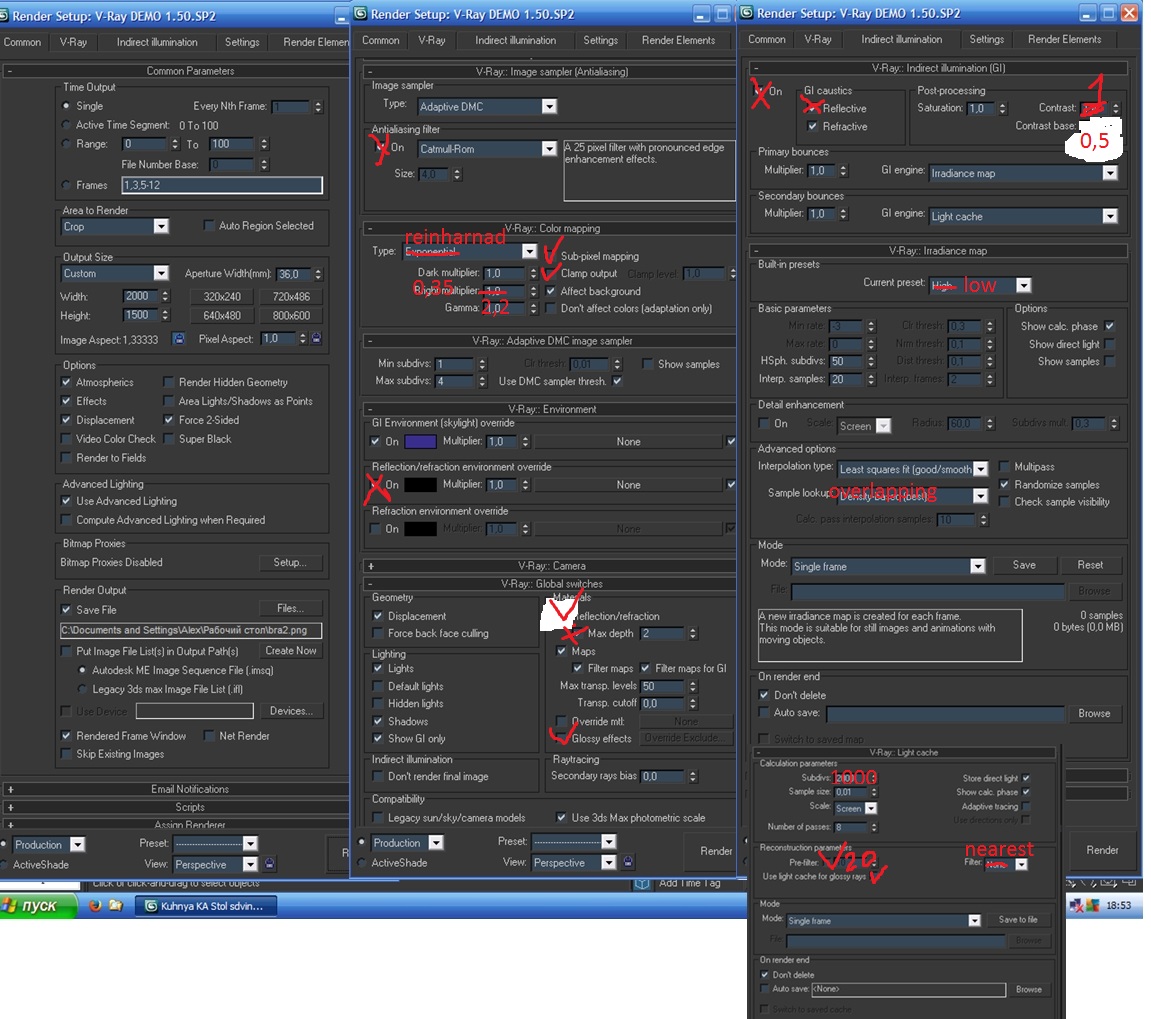 - галка use lightcache for glossy rays ускорит ваш рендер, но внесет некоторую погрешность в отражения, если не заметите разницы - можно оставить включенной,