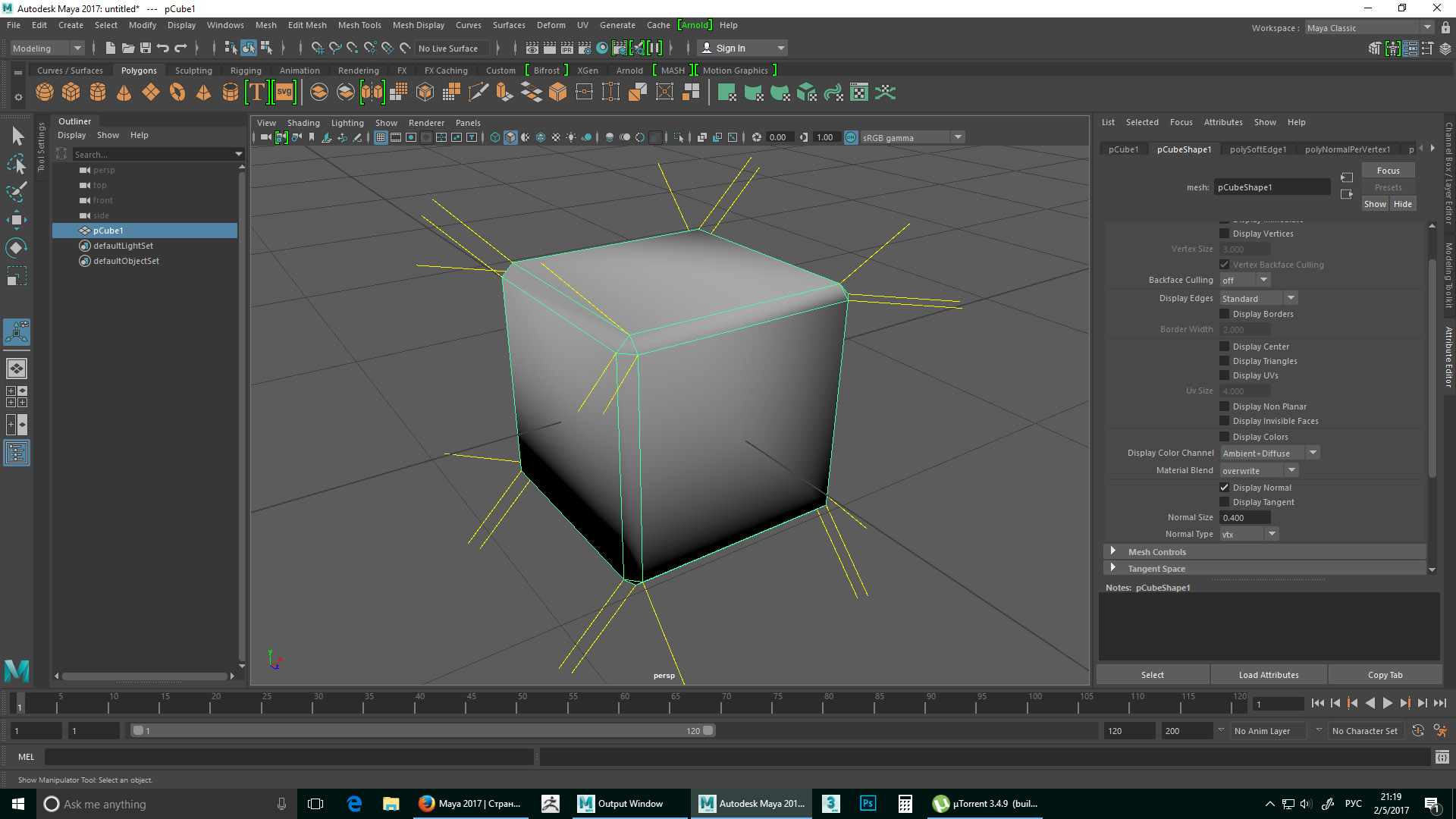 Накидываем на куб чамфер х1, потом Mesh Display > Set to Face с настройкой "Match Face Normal" и потом применяем на весь объект софт эдж.