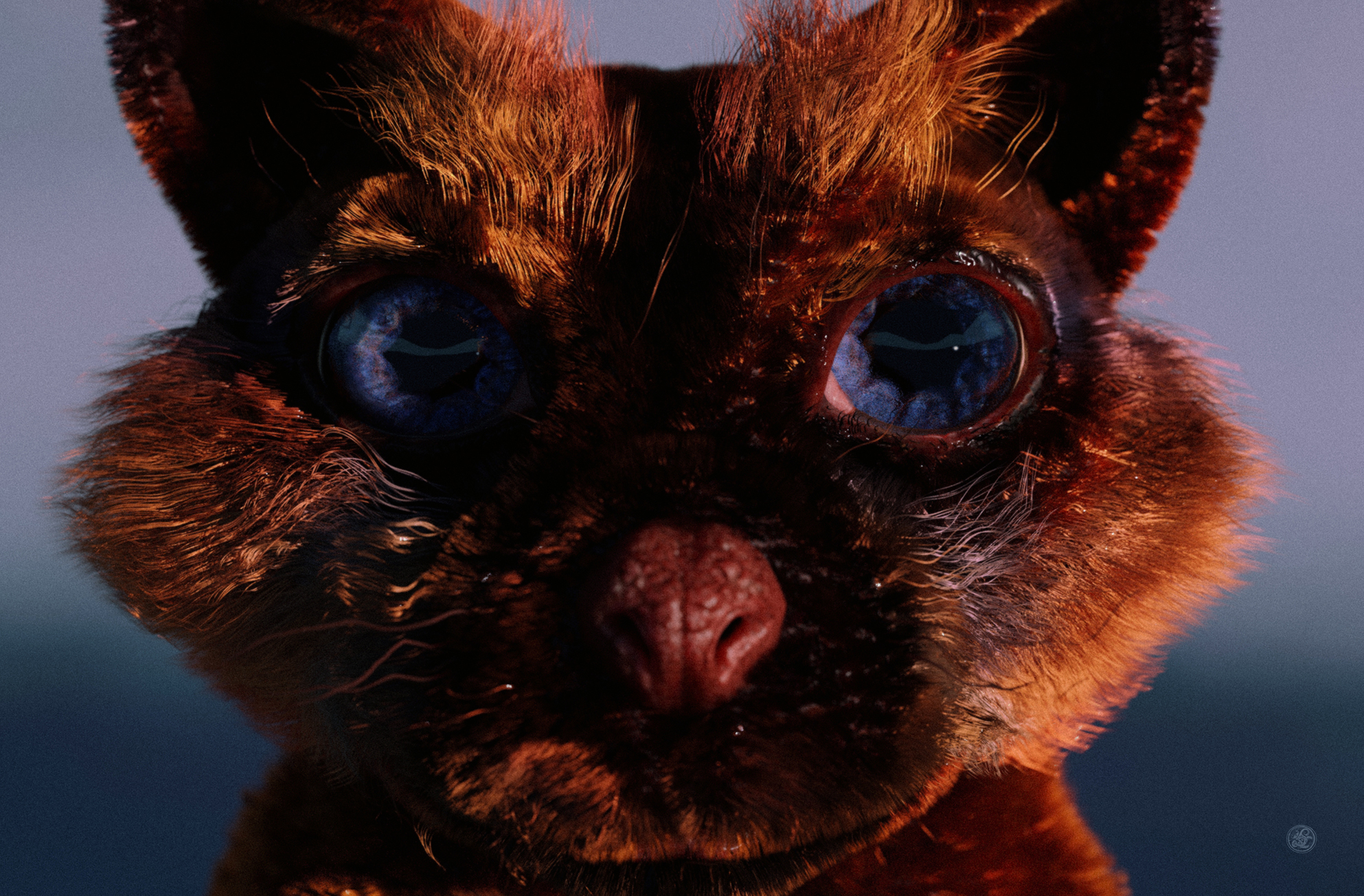 Рендер делал в блендере. Шерсть делал с помощью системы частиц, там надо играться с настройками, правда шерсть эта притормаживает всю работу в итоге. Люди делают другим способом как я понял с помощью плашек, но к нему надо тоже ещё привыкнуть, зато облегчает работу и такой метод более функционален.