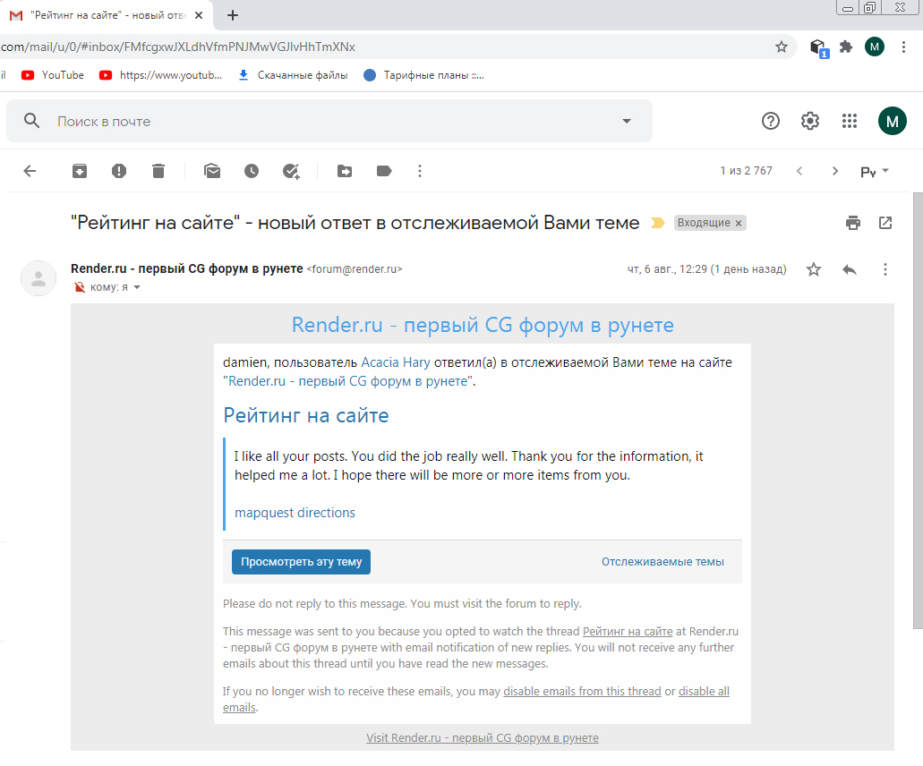 Вчера пришло уведомление странное с форума по отслеживаемой теме от Acacia Hary и ссылкой на какой-то сайт mapquest directions. (I like all your posts. You did the job really well. Thank you for the information, it helped me a lot. I hope there will be more or more items from you. )