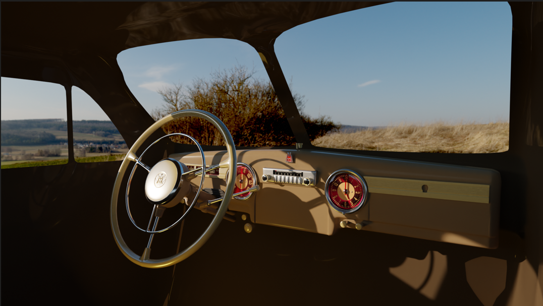 Освещение выставлено не понятно при помощи чего, скорее всего там нет HDR, всё черное, кроме руля текстур нет вообще адекватных..
