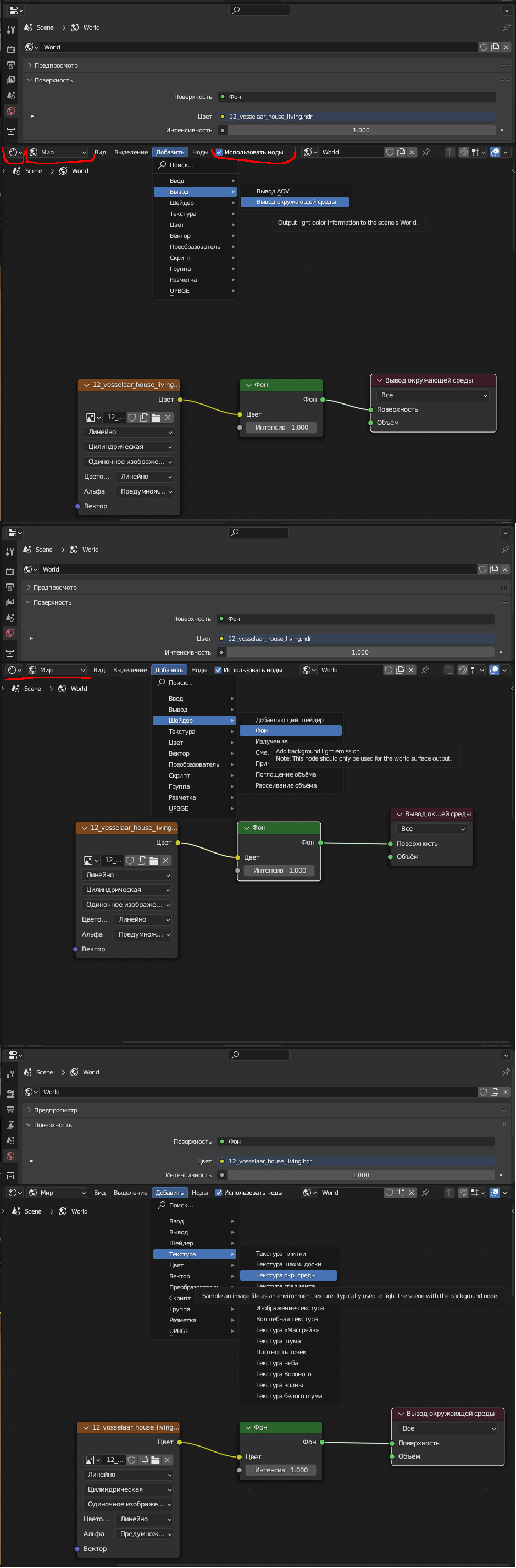 Чтобы вставить hdr в фон сцены лучше изначально привыкать пользоваться редактором шейдеров. Ибо по незнанию можно удалить не только жёлтую кнопочку но и зелёную. И в свойствах мира просто не будет окружающей среды.
