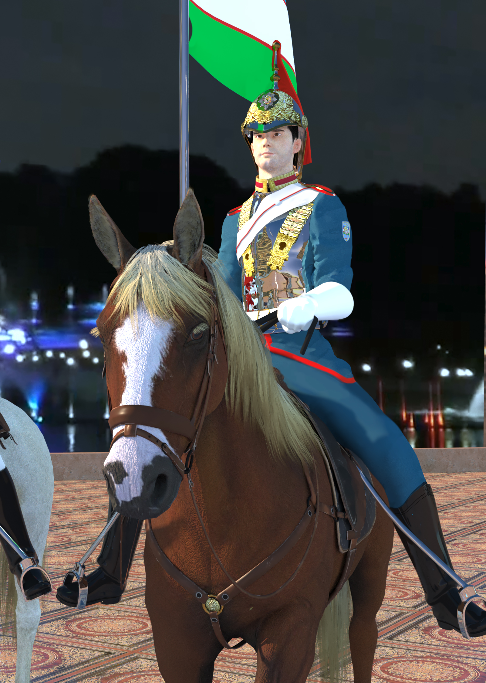 Понятно, что на фоне у тебя фото, но ведь по-хорошему, это тоже должны быть источники света. Те-же фонтаны там чем-то подсвечены.