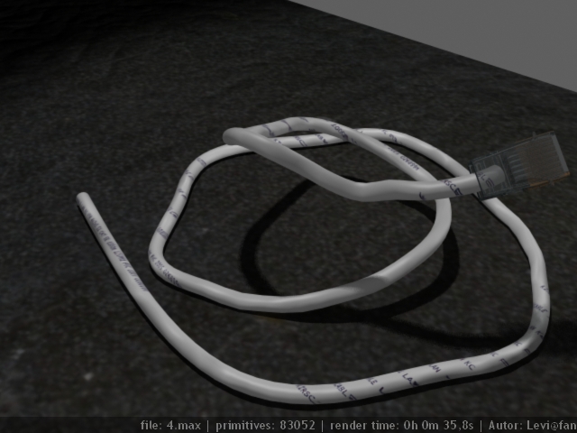 Вобщем собрав коекак накопленные знания (хотя досих пор кажется, что единственное, что я пока выучил - это куча Хот-Кеев в Максе =D ) решил изобразить витую пару с разъемом rj-45 аля змея =)
