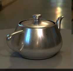 2. Выстави Reflection Glossiness в материале у чайника, меньше единицы, например 0,95.