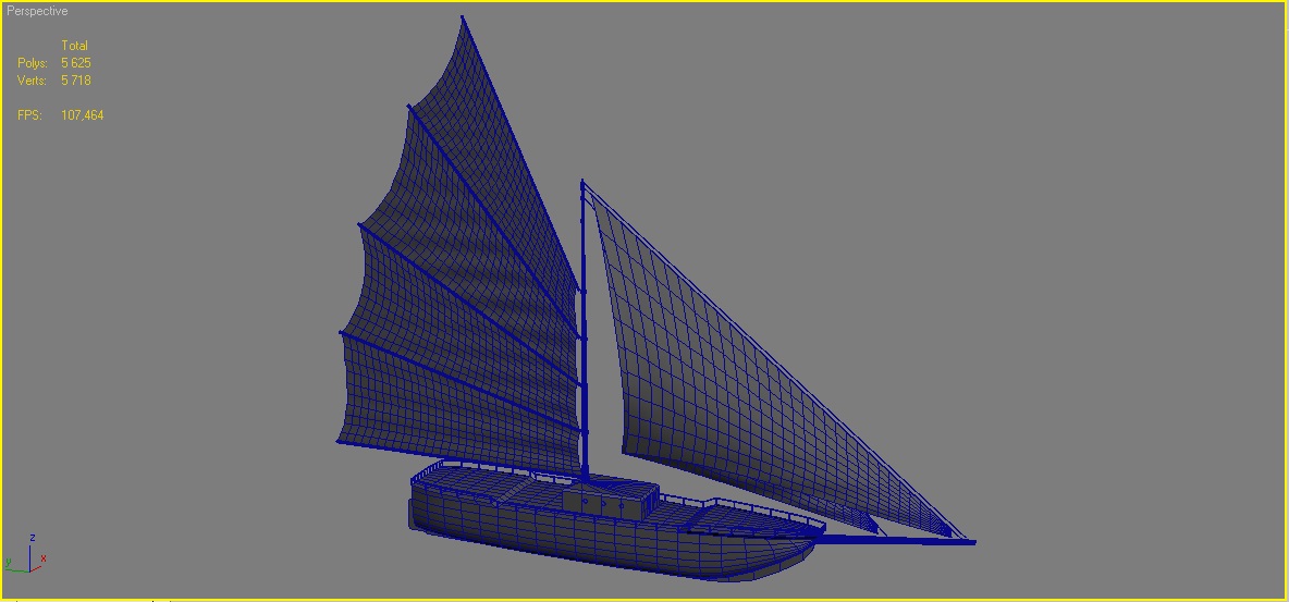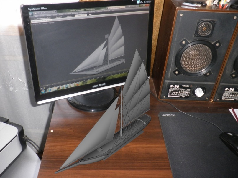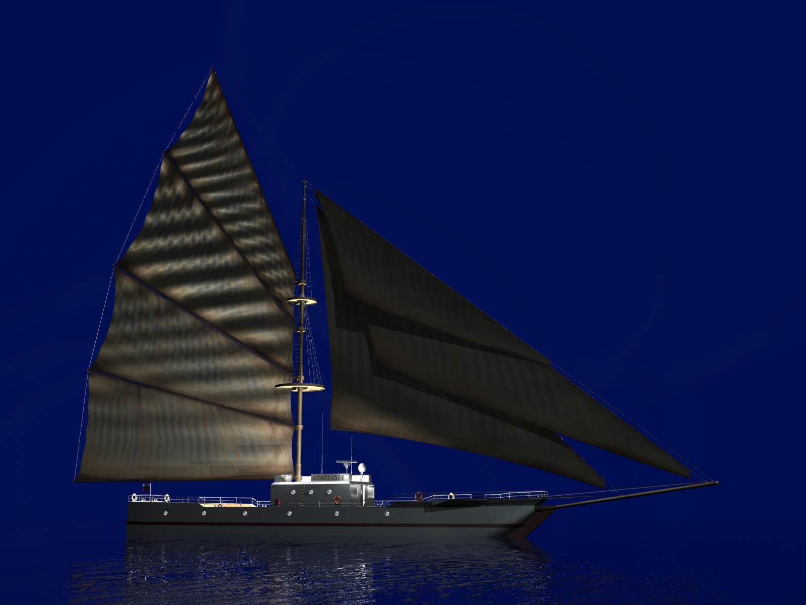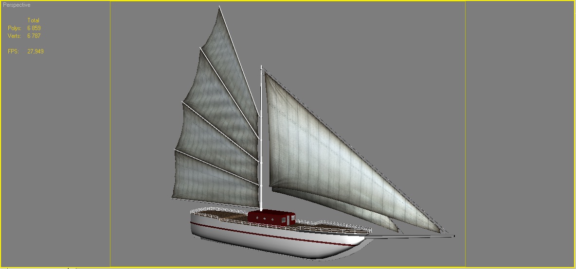 Есть сомнение по расположению мачты. У вас она в центре корпуса, даже скорее ближе к корме, в то время как у реальных гафельных тендеров к которым относится ваш тип парусника. мачта расположена от центра ближе к носу, т.е. в вашем случае она по идее должна быть не за рубкой, а перед ней. Как я понимаю, это связано с расположением точки приложения движущей силы (место крепления мачты к корпусу) относительно центра масс судна и вертикальной оси руля. Если эта точка впереди центра масс и, соответственно, дальше от расположенного на корме руля, то судно будет лучше и легче управляться.