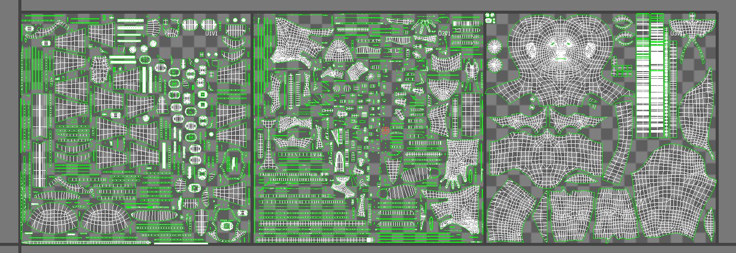Еще кстати нуждаюсь в совете, не могу что-то сходу сориентироваться - я планировал на модель несколько текстур в высоком разрешении. Например одна текстура в 4к на доспехи и побрякушки, одна на перчатки и сапоги и ремни, одна на тело и одна на оружие и лицо. Еще окончательно не решил может на две все поделю. Запекать планирую в мармосете, текстурить в сабстансе. Так вот мне модель дробить на отдельные объекты? Или я могу собрать все в одну модель просто с разверткой на несколько uv квадратов?