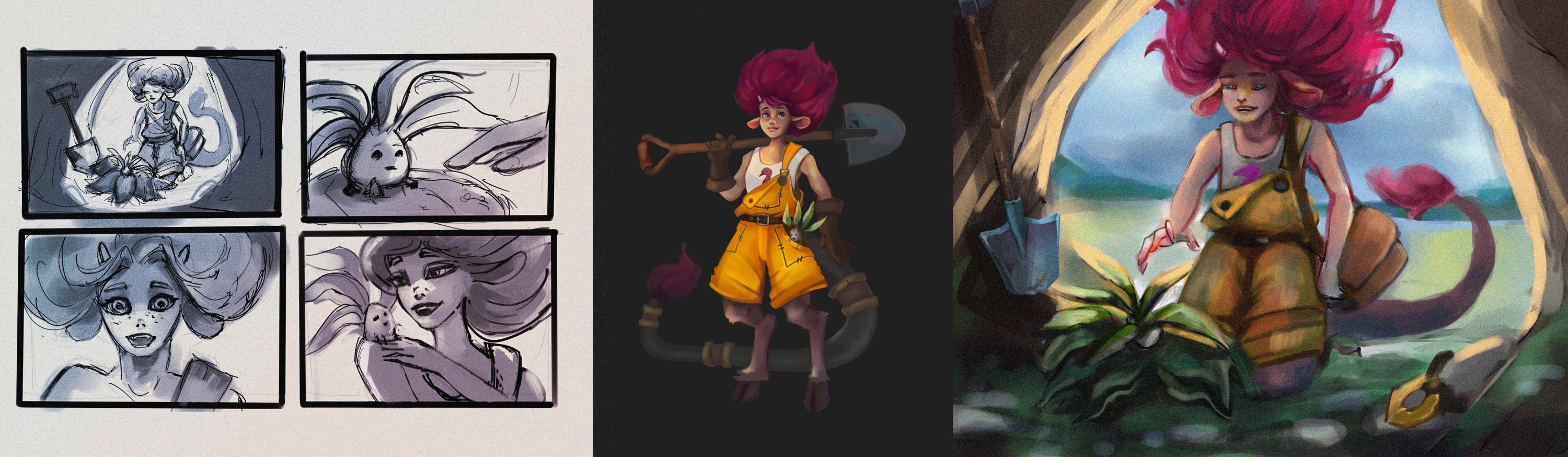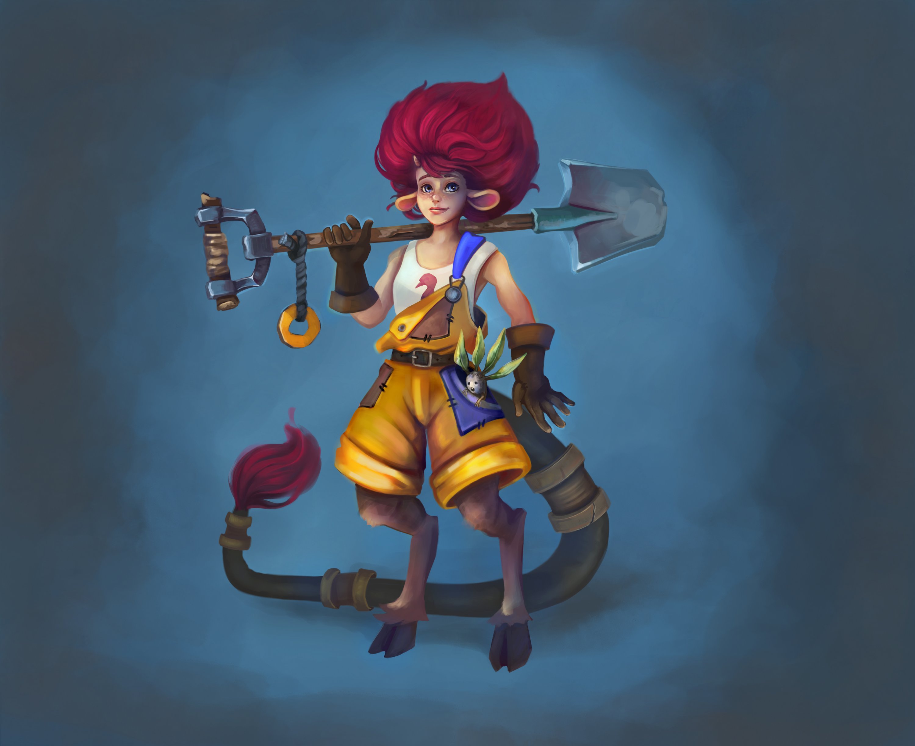 Знакомьтесь, ее зовут Шен, ухаживает за лесными духами, монстрами и цветами. Обычно носит с собой различные инструменты, главный из которых лопата, которая передается по наследству. Выросла в небольшом домике в лесу, живет обособленно, очень неравнодушна к лесным монстрам.